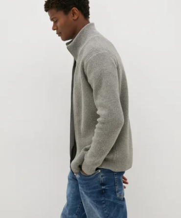 Grey Ribbed Full Zip Cardigan